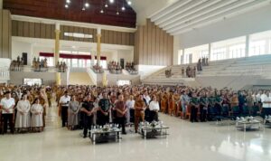 Suasana apel semakin khusyuk saat kegiatan dilanjutkan dengan Misa Syukur dan Ibadah Oikumene yang dipimpin Uskup Keuskupan Manado, Benedictus Estephanus Rolly Untu. Dalam khotbahnya, ia mengajak seluruh hadirin untuk menumbuhkan sikap murah hati, tidak mudah menghakimi, serta siap mengampuni dalam kehidupan sehari-hari maupun dalam pekerjaan.