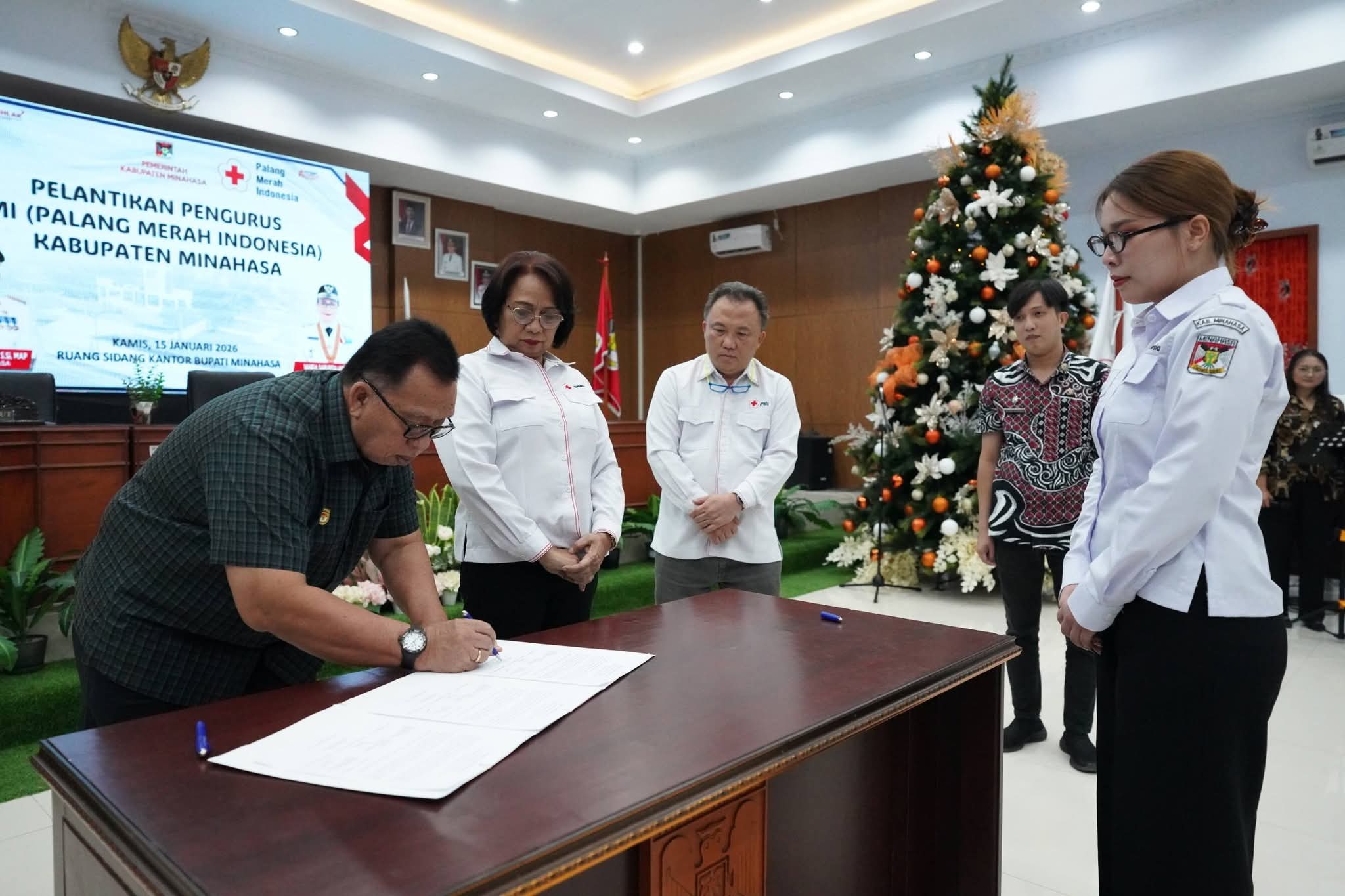 realitasulut.com MINAHASA — Palang Merah Indonesia (PMI) Kabupaten Minahasa resmi melantik jajaran pengurus baru periode 2026–2031 dalam sebuah prosesi khidmat yang digelar di Ruang Sidang Kantor Bupati Minahasa, Kamis (15/1/2026). Kepengurusan baru ini dipimpin oleh Sarah Dondokambey, SH, MH, yang juga dikenal sebagai srikandi muda Minahasa serta anggota DPRD Kabupaten Minahasa.